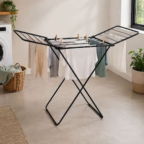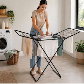 Otimização espacial: Design compacto ideal para apartamentos e lavanderias pequenas. Capacidade estendida: Abas laterais oferecem quase 10 metros lineares de secagem. Mobilidade total: Estrutura leve de 990g facilita deslocamento conforme incidência solar. Resistência estrutural: Suporta carga total de até 12kg de roupas úmidas. Proteção anticorrosiva: Pintura epóxi de alta aderência evita ferrugem e manchas. Armazenamento rápido: Fechamento articulado ocupa espessura mínima quando guardado. Estabilidade garantida: Base projetada para equilíbrio em superfícies planas e rígidas. Multiuso: Perfeito para secagem de lençóis, toalhas, jeans e peças íntimas. Instalação zero: Produto pronto para uso, basta abrir e travar as abas. Estética discreta: Cor preta fosca confere visual moderno e limpo ao ambiente.