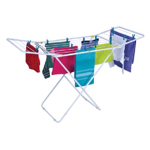 Varal de Chão com abas Mor - 6005A maneira mais barata e ecológica de secar roupas. Perfeito para quem não tem muito espaço em casa ou em apartamentos.Possui ponteiras em seu pés para não danificar o piso. Composição do Produto: - Estrutura em tubo de aço com acabamento em pintura epóxi a pó branca peças plásticas em polipropileno.Dimensôes do produto: - Dimensões m : 1,520 x 0,560 x 0,940- Peso do prod. kg : 3,3