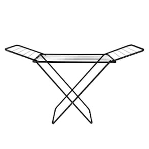 Para quem vive uma vida agitada e não pode deixar as roupas secando a céu aberto, ou para quem precisa de uma opção por conta da quantidade de roupas, o Varal de Chão com Abas Slim Preto é ideal. Ocupa pouco espaço, é prático para montar, desmontar e guardar. Sua estrutura foi desenvolvida em tubo de aço com acabamento em pintura epóxi a pó preta, que proporciona um visual moderno. Suas peças plásticas são de polipropileno, incluindo as ponteiras em seus pés que ajudam a proteger o piso. Ideal para quem busca praticidade e qualidade em um mesmo produto, o varal otimiza seu espaço distribuindo seis varetas resistentes no centro e duas abas com quatro varetas cada com capacidade para até 11 metros de roupas ou 19 Kg distribuídos. Assim que recolher suas roupas, você guarda o seu varal dobrado em qualquer lugar. Perfeito para manter a organização da sua casa!