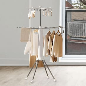 Design Vertical de 2 Andares: mais espaço para secar suas roupas sem ocupar área no chão.