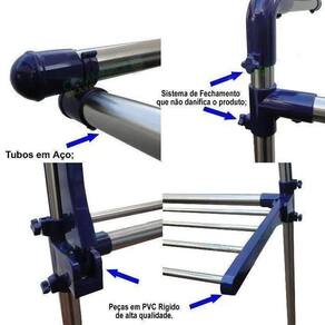 Ficha Técnica: Material: Aço inoxidável Dimensões: 147 cm (A) x 78 cm (L) x 72 cm (P) Peso: 3,25 kg Características: Dobrável para facilitar o armazenamento, ideal como secador interno e externo