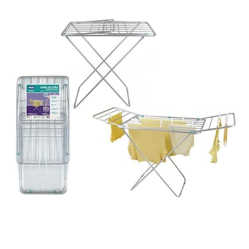 Especificações Gerais do Produto: Possui seis varetas resistentes no centro e duas abas com três varetas cada Para até 8,16 metros de roupa ou 15 Kg distribuídos Suas peças plásticas são de polipropileno,incluindo as ponteiras em seus pés que ajudam a proteger o piso Sua estrutura resistente foi desenvolvida em tubo de alumínio, que garante sua durabilidade Como não enferruja é ideal para regiões litorâneas Prático e funcional é perfeito para quem não tem muito espaço em casa ou apartamento