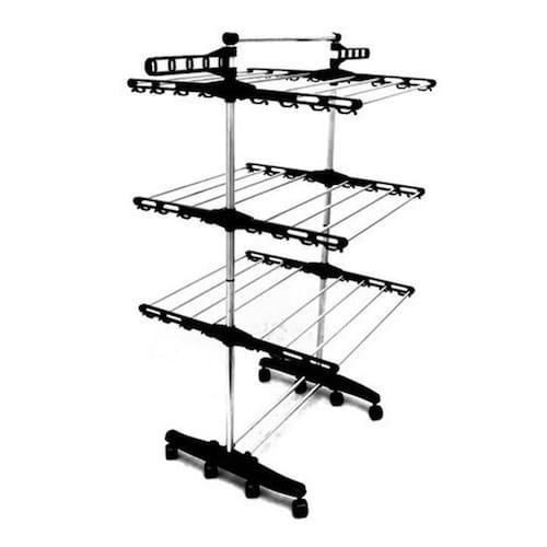 Varal De Chão Para Roupas Retrátil Em Alumínio 3 Andares Acabamento: Alumínio Você receberá o suporte exatamente igual a foto, com 1 ano de . Ideal para locais com espaço reduzido, apartamentos, casa de praia e lavanderias, acomoda até 40kg de roupas para secar em seus 15 metros lineares. - Características: Varal multifuncional com 3 andares de prateleiras retráteis, projetados para otimizar o espaço da sua lavanderia e proporcionar uma melhor secagem de roupas, toalhas, roupas íntimas e calçados. Rodas para fácil manuseio e ótima opção de armazenagem. Sua estrutura em alumínio proporciona durabilidade em ambientes com maresia. Possui abas laterais móveis para pendurar cabides Acomoda até 10Kg em cada bandeja. Fácil montagem devido ao seu design moderno, acompanha manual. - Acabamento: Abs/alumínio - Especificação: Dimensões: Aberto - Altura 1,31m x Largura 60cm x Profundidade 67cm. Fechado - Altura 1,31m x Largura 60cm x Profundidade 23cm. Acompanha: - 8 Rodinhas; - 1 Base montada; - Suporte para Aerógrafo; - 2 Tubos Laterais para parte Inferior; - 2 Tubos Laterais para parte Superior; - 1 Tubo Superior com Cotovelos; - 2 Portas Cabides; - 6 Suportes de Bandejas; - 6 Bandejas; - 12 Pinos de Bandejas. Peso aproximado do produto: 3kg - : 1 ano contra defeito de fabricação. As rodas seguem com hastes dobráveis para ocupar pouco espaço quando não utilizado e são giratórias de acordo com a foto do anúncio. Comercial SD Eletro-Eletrônicos e Utilidades Ltda Ficha técnica - Acabamento: Alumínio