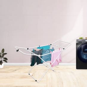 O Varal de Chão Reforçado com Abas Portátil e Dobrável em Aço é a solução perfeita para quem precisa de um varal prático, fácil de transportar e com grande capacidade. Feito de aço reforçado, este varal possui abas laterais que permitem secar mais roupas em menos espaço. Ideal para qualquer tipo de ambiente, interno ou externo, e com um design dobrável que facilita o armazenamento quando não estiver em uso.