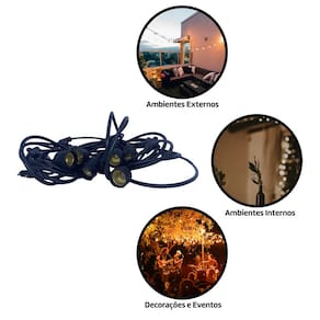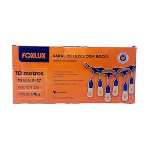 O Varal de Luzes Bivolt Foxlux é uma solução decorativa para iluminar ambientes externos e internos. Permite a instalação de lâmpadas LED, halógenas e incandescentes, proporcionando um ambiente aconchegante e charmoso. Possui índice de proteção IP65, sendo resistente à água e adequado para áreas externas como jardins, varandas e festas ao ar livre.