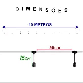 Cordão de 10 Metros, com capacidade para até 10 lampadas incandescente, fluorescente ou led é flexivel e oferece iluminação ideal para o seu ambiente.