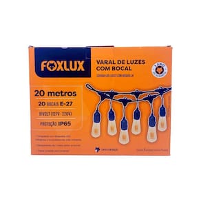 Varal De Luzes Bocal Foxlux E-27 Bivolt Sem Lâmpadas 20m Varal de Luzes Bocal E-27 Bivolt IP65 para Áreas Internas e Externas FOXLUX Transforme seus ambientes com o Varal de Luzes Foxlux, a solução perfeita para quem busca uma iluminação charmosa e versátil tanto em áreas internas quanto externas. Ideal para decorar jardins, varandas, festas, eventos ao ar livre e espaços gourmet, este varal proporciona um ambiente acolhedor e elegante que valoriza qualquer ocasião.