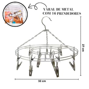 VARAL DE METAL COM 16 PRENDEDORES EM METAL - 32CM - 15PC31