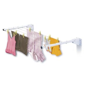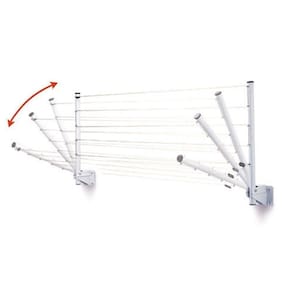- 01 Varal De Parede Articulado 02 Hastes Pintada Epóxi - 18 Metros de Corda Nylon Branca08 Parafusos com buchas para fixação na parede