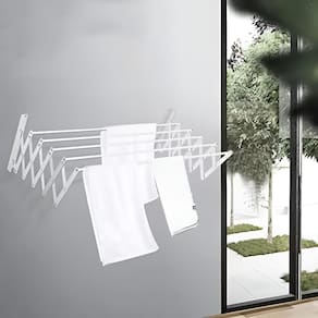Tenha mais organização e eficiência com o Suporte de Parede para Roupas Retrátil. Produzido em metal resistente, ele é ideal para ambientes compactos e garante praticidade na secagem de roupas, toalhas e peças leves, tanto em áreas internas quanto externas.