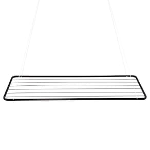 O Varal de Teto Preto é a solução perfeita para quem não possui muito espaço para secar as suas roupas. Disponível agora também na cor preta, conta com design moderno e super prático. Muito bem planejado, acompanha um kit para que você possa fixá-lo no teto e corda para que a altura possa ser regulada de acordo com sua necessidade. Possui estrutura em tubo de aço, com acabamento em pintura epóxi a pó preto e peças plásticas em polipropileno. Tem capacidade para 9,3m ou 14Kg de roupas úmidas distribuídas uniformemente. Leve e durável, possui qualidade nos acabamentos, garantia dos produtos Mor.