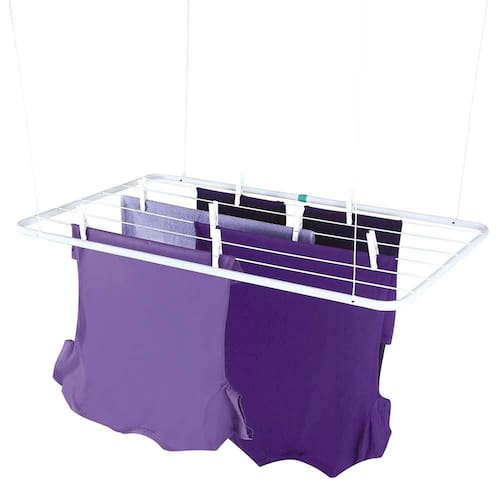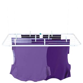 O Varal de Teto é a solução perfeita para quem não dispõe de muito espaço para secar as suas roupas. Muito bem planejado, acompanha um kit para que você possa fixá-lo no teto e corda para que a altura possa ser regulada de acordo com sua necessidade. Possui estrutura em tubo de aço com acabamento em pintura epóxi a pó branca e peças plásticas em polipropileno. Tem capacidade para 6,95m ou 12Kg de roupas úmidas distribuídas uniformemente. Extremamente resistente, é indicado principalmente para regiões litorâneas. Leve e durável, possui qualidade nos acabamentos, garantia dos produtos Mor.
