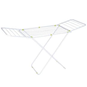 A maneira mais barata e ecologica de secar roupas. Perfeito para quem nao tem muito espaco em casa ou em apartamentos. Possui ponteiras em seu pes para nao danificar o piso.