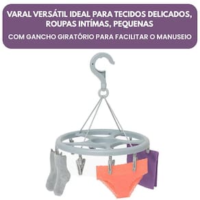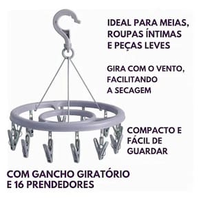 O Varal Multiuso 16 Pregadores Preto é a solução prática e funcional para quem busca otimizar espaço e manter as roupas sempre organizadas. Com design redondo e retrátil, ele é ideal para secar peças menores como roupas íntimas, meias, cuecas, calcinhas, lenços e peças delicadas, oferecendo mais praticidade no dia a dia. Fabricado em material resistente e durável, o varal conta com 16 pregadores firmes, que garantem a fixação das roupas sem deixá-las escorregar. Seu formato compacto permite ser em apartamentos, casas, lavanderias e áreas com pouco espaço, facilitando a rotina de quem precisa de praticidade. Além de funcional, seu acabamento em cor preta traz discrição e elegância, combinando com qualquer ambiente. O sistema retrátil facilita o manuseio e o armazenamento quando não estiver em uso, ocupando o mínimo de espaço possível. Benefícios e Diferenciais: Compacto e retrátil, fácil de guardar. Ideal para roupas íntimas, meias, cuecas, calcinhas e peças pequenas. 16 pregadores resistentes para maior segurança. Formato redondo que distribui melhor as peças. Perfeito para ambientes pequenos, como apartamentos e lavanderias. Material leve, prático e durável. O Varal Multiuso 16 Pregadores Preto é indispensável para quem valoriza praticidade e organização no cuidado das roupas. Marca: Não Informado