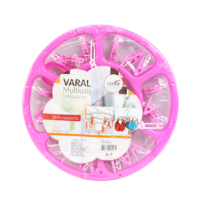 VARAL MULTIUSO COM GANCHO E 18 PRENDEDORES DE PLÁSTICO 34X2CM - CA12178.