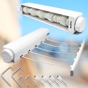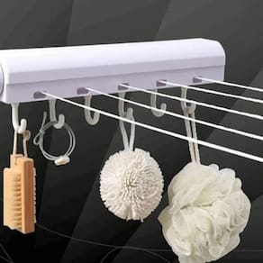 Varal De Parede Retrátil Automático Secador Recolhivel + 6 Ganchos Varal De Parede Retrátil Automático Secador Recolhivel + 6 Ganchos Varal Retrátil de Parede 5 Cordas Automático com Trava e Ganchos - Até 3,75m Transforme sua lavanderia com o Varal Retrátil Automático de 5 Cordas, a solução ideal para quem busca praticidade, organização e economia de espaço. Com design compacto e funcional, o varal oferece cinco cordas retráteis com sistema de recolhimento automático, além de 6 ganchos extras para pendurar toalhas, esponjas, escovas ou outros acessórios. Perfeito para uso em lavanderias, banheiros, varandas ou áreas de serviço, o varal pode ser estendido até 3,75 metros e suporta aproximadamente 3 kg por corda. Possui trava de segurança lateral, que impede o fechamento automático durante o uso, garantindo mais estabilidade e controle. Benefícios do Produto: 5 cordas retráteis com recolhimento automático Trava lateral para uso seguro Acompanha 6 ganchos multiuso Design compacto que economiza espaço Fácil instalação na parede Ideal para pendurar roupas, toalhas, objetos e mais Pode ser com ou sem os ganchos Especificações Técnicas: Material: Polipropileno e Nylon Cor: Branco Suporte de peso: até 3 kg por corda Comprimento do varal fechado: 37 cm Largura: 6 cm Comprimento total das cordas esticadas: 3,75 metros Espaço entre as cordas: 6 cm Conteúdo da Embalagem: 1 Varal Retrátil de 5 Cordas 6 Ganchos 1 Kit de Instalação Marca: Não Informado