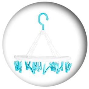Varal de plástico resistente para pendura roupas íntimas com 18 pregadores.