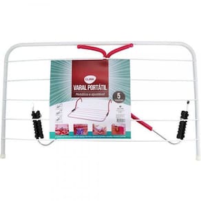 Informações Gerais: Marca: Clink Composição: Metal Branco 1 Varal portátil Ajustável Embalagem: Altura 4 cm x Largura 39 cm x Comprimento 62 cm Peso: 0,435g