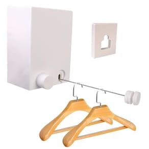 Design retrátil automático - o varal retrátil tem uma alça de puxar, que pode ser automaticamente retraída para dentro da caixa após o uso, economizando espaço e melhorando a elegância da sua casa e ao ar livre. Podes escolher a distância de suspensão livremente, dependendo do número de roupas.