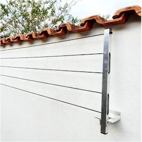 Acompanha: - 2 Hastes de alumínio articulada 50cm de comprimento ; - 4 parafusos sextavados 10mm; - 4 buchas 10mm; - 20 metros de corda de aço encapada com pvc;