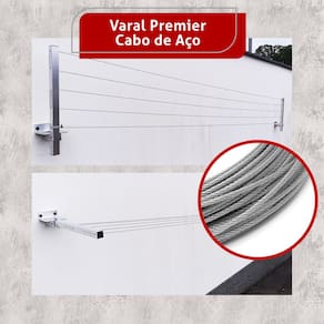 Varal Roupa Articulado Parede Aluminio Cabo De Aço Premier