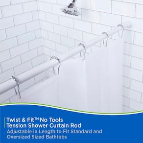 - O varão de cortina de chuveiro Kenney Twist & Fit No Tools é ajustável de 91 a 160 cm de largura para caber em aberturas de banheira de tamanho padrão