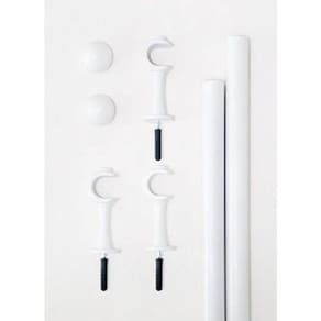 Varão para Cortina 3 metros simples com kit de instalação Cor: Branco Kit Varão 3,00 M Simples Fino Para Cortina 01 varão de 3,00 m de comprimento com 19 milímetros de diâmetro; 03 suportes simples de parede de um parafuso para varão de 19 milímetros; 02 ponteiras; 03 buchas e parafusos para fixação. Disponível nas cores: Branco Bege Tabaco Ouro velho Composição: Varão de Ferro encapado com PVC termo encolhivel; Suportes em PVC resistente. Qualquer dúvida por favor nos chame que teremos prazer em atender você