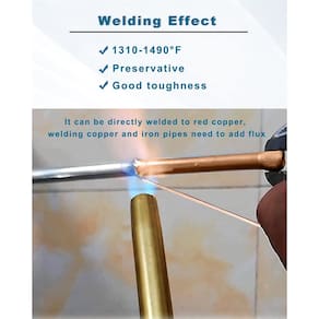 1 - MATERIAL: 10 hastes de cobre para brasagem de 39,9 cm estão incluídas no pacote. A composição química das hastes de brasagem: Fósforo (P): 7%, Cobre (): o restante. - VANTAGENS: Faixa de temperatura de brasagem: 710 °C-810 °C. Sólido: 1600 °C, Líquido: 810 °C. Resistência à tração (RM): 838 MPa. As hastes de brasagem PhosCopper têm boa fluidez durante a soldagem, forte calafetagem e podem fluir para pequenos espaços. - Embalagem: a embalagem da haste de soldagem Cloud Fire foi otimizada e é embalada em um tubo selado, o que pode efetivamente reduzir a ocorrência de umidade e outros eventos em comparação com outras embalagens. As tampas em ambas as extremidades também podem ser abertas para fácil armazenamento e uso. - APLICAÇÃO: A haste de brasagem de cobre de alta qualidade é usada para a soldagem de tubos de cobre de geladeira, tubos de cobre de ar condicionado e tubo de água de cobre, bem como para a indústria eletromecânica. - SERVIÇO: Quando você tiver um problema no processo de uso da haste de soldagem, não hesite em entrar em contato conosco imediatamente, resolveremos todos os problemas para você. E estamos ansiosos para receber suas sugestões sobre a haste de soldagem, continuaremos a melhorar os produtos e atendê-lo melhor.