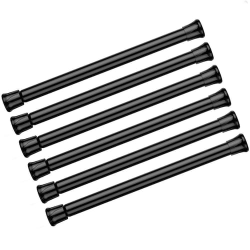 AIZESI Varões de cortina de tensão de mola haste de tensão curta (preto, 19 cm a 33 cm - 6 peças) - ?Nota de compra?Haste de tensão pequena, os ajustes variam em tamanho de apenas 12,7 cm, é necessário obter as medidas corretas e pedir o tamanho certo - Detalhes de tamanho: espaço adequado para 19 a 33 cm, meça o tamanho necessário antes de comprar. Diâmetro da haste: 1,27 cm, diâmetro das tampas - 9,5 cm - ?Material de longa duração?Feito de aço carbono de qualidade com tampas antiderrapantes, resistente à corrosão e à prova de ferrugem. Mola interna durável de alta resistência, pode ser usada repetidamente. Uma haste pode suportar 1,4 a 2,3 kg - ?Configuração simples?Sem necessidade de ferramentas: expande com um simples toque, oferece tensão consistente para um ajuste firme e seguro de longa duração - ?Uso versátil?utilizado como um pequeno varão de cortina para janelas laterais ou gaveta estreita e divisor de armário, portas francesas, portas de pátio, portas frontais e pequenos espaços para economizar e organizar. É um bom ajudante para fazer você mesmo seu espaço de armazenamento em casa