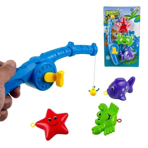 itens inclusos - 1 varinha com molinete e anzol. - 2 peixes - 1 caranguejo homologação inmetro: abcp-bri-0225-2021-13
