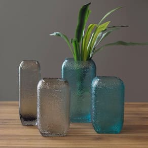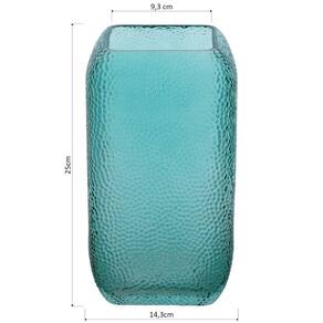 Vaso 25x14x14cm Vidro Azul O grande destaque desse vaso de vidro é o seu belíssimo acabamento com detalhes em alto relevo e as suas formas geométricas que podem fazer toda a diferença na decoração do ambiente. Ele pode ser utilizado para trazer um toque da natureza para dentro dos espaços ou, simplesmente como um objeto de enfeite para móveis.