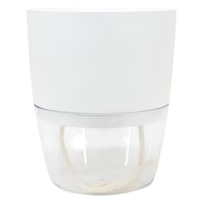 Vaso Acqua Auto Irrigável (12x14) Cor Branco VASART Descrição A linha Acqua é para quem não abre mão de ter uma plantinha em casa, mas não tem muito tempo ou experiência para cultivar. Seu sistema de autoirrigação, composto por um reservatório de água com cordas, garante que a terra fique sempre úmida e a plantinha sempre nutrida sem muito trabalho. Basta acompanhar o nível da água no reservatório transparente e encher quando for necessário.