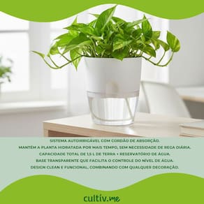 * Desenvolvido com sistema de autoirrigação, possui corda para absorção que garante a quantidade ideal de água para suas plantas, evitando o excesso ou a falta de irrigação.