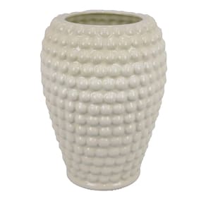 Vaso redondo Benjara Rozie com design de textura de bolha, cerâmica branca de 15 polegadas