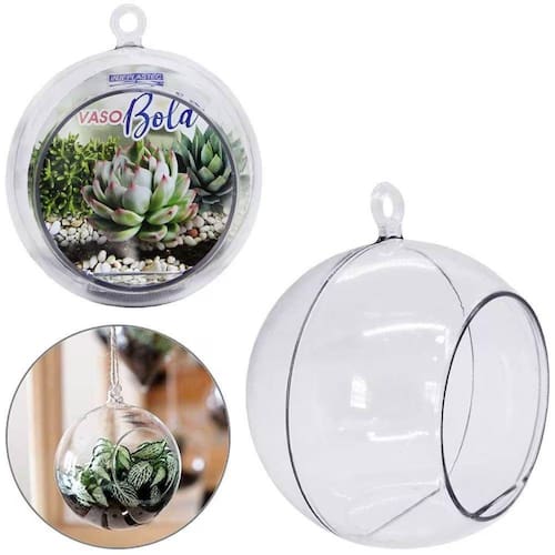 Vaso Bola Suspenso (Extra Grande) INJEPLASTEC Descrição * Vaso bola em acrilico suspenso, perfeito para terrário, plantas suculentas, pequenos arranjos e decoração em geral.