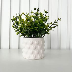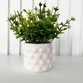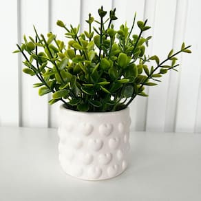 Decoração enfeite sala rack estante vasinho branco de cerâmica delicado detalhe trabalhado coração 3D com arranjo planta artificial.