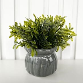 Material do item: Cerâmica. Cor Predominate: Cinza. Planta artificial acompanha o vaso.