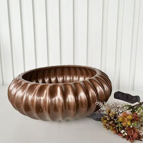 Que tal dar repaginada na decoração da sua casa, local de trabalho ou qualquer outro lugar que desejar, com muito estilo e bom gosto com esse lindo vaso centro de mesa cobre metálico decorativo, criando um ambiente sofisticado e elegante. Nova tendência na decoração contemporânea, produzido em cerâmica, pode ser utilizado em ambientes internos ou externos ressaltando a beleza e hârmonia na sua casa.
