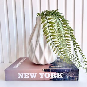 ATENÇÃO: Livro decorativo e planta artificial que estão na foto são meramente ilustrativos e NÃO acompanham o vaso branco.
