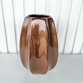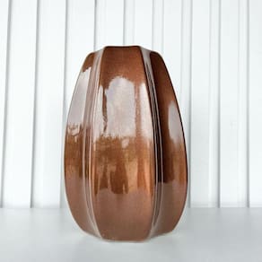 Decoração sala rack aparador vaso centro de mesa médio de cerâmica moderno trabalhado alto relevo na cor cobre brilho decoração luxo.