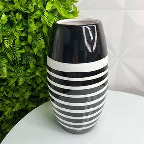 Vaso centro de mesa grande moderno de cerâmica listrado.