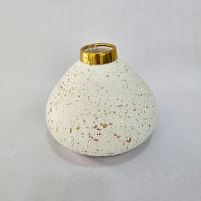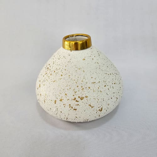 VASO CERÂMICA BRANCO RESPRINGOS DOURADOS Cone - Alt 14.50cm x Diam 17cm -