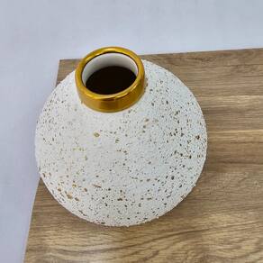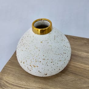VASO EM CERÂMICA BRANCA COM RESPRINGOS DOURADOS E PROTEÇÃO NO FUNDO PARA NÃO RISCAR SEU MÓVEL.