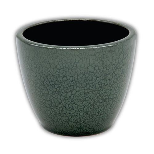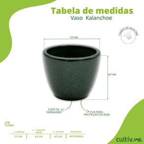 Característica *Material: Cerâmica Esmaltada * Cor:Verde Acinzentado * Altura: 6,7 cm * Diâmetro: 7,7 cm * Boca: 6,8 cm * Largura total: 7,7 cm * Base: 5,2 cm * Furo de drenagem: Sim * Acabamento: Esmaltado * Produção: Artesanal * Indicado para Pote 06