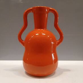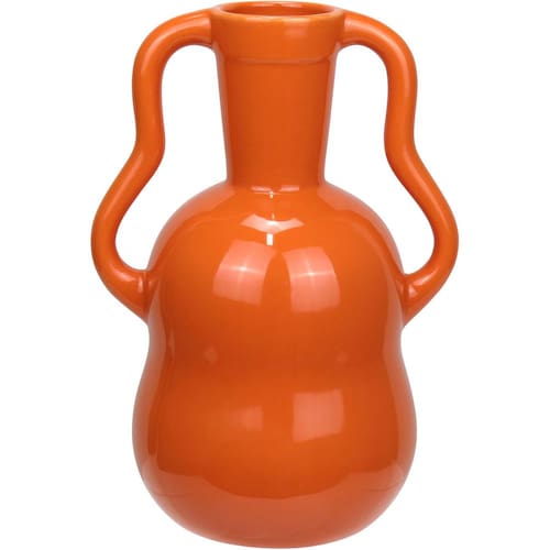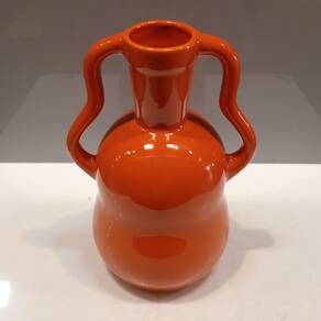 VASO Altura: 25 cm Largura: 17 cm Profundidade: 17 cm Espessura: ,4 cm Peso: 0,89 Kg Diâmetro da Base: 10,4 cm Diâmetro do Corpo: 12 cm Diâmetro do Topo: 5,2 cm Material: Cerâmica Cor: Laranja