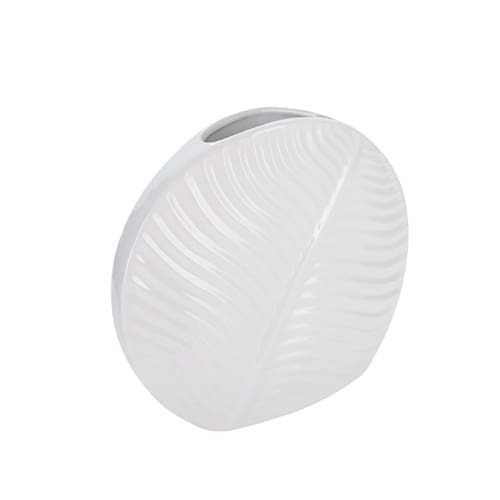 Transforme a decoração do seu ambiente com o Vaso Solitário em Dolomita, um toque sofisticado e minimalista para qualquer espaço. Com um design redondo elegante, sua estrutura em cerâmica branca é adornada com delicadas folhagens, trazendo charme e leveza à composição.