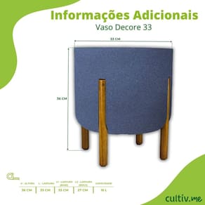 Vaso Cilíndrico Decore 33 (16L) Cor Iron JAPI Descrição * O vaso cilíndrico Decore 33 é pensado para ambientes internos. * Valoriza o visual e ajuda a compor a decoração. * Combina bem com estilos escandinavo, minimalista e moderno. * Pés em madeira maciça (pinus) * Ótimo para decoração com um charme extra, permitindo a composição com plantas pendentes, como samambaias, jiboias, lambaris, heras, etc.