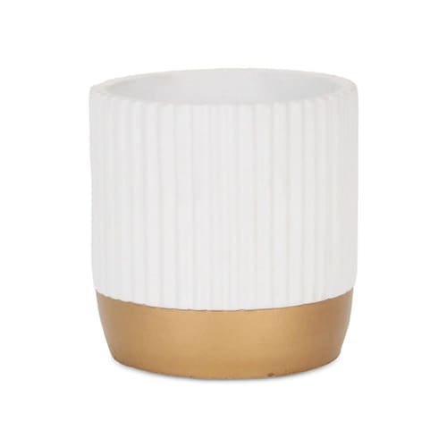Vaso de cerâmica redondo Cheungs Aurone com base com acabamento dourado - Grande - Branco