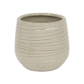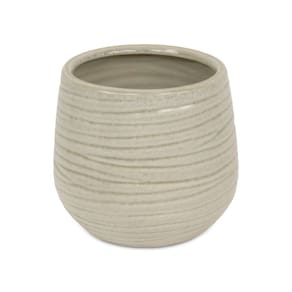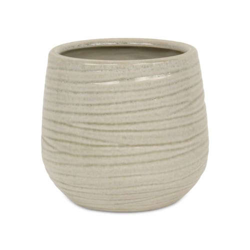 Vaso de cerâmica Cheungs Fairloam redondo com padrão forrado de ondas curvas - Grande - Branco