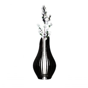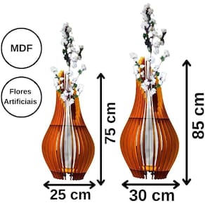 Vaso De Chão Decorativo Grande Andromeda Mdf Preto Tamanho Kit Com 2 - 85x30cm E 70x25cm